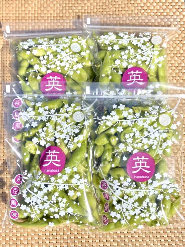 緑色の美しいサヤでありながら、茹でると立ちこめる芳ばしい香り。塩で引き立つ甘さとコク。是非、サヤごと口に含み、中の豆を出してお食べ下さいね。