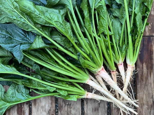 ほうれん草の根っこ好きなお客様のために、畑から根っこごと引き抜いて水洗いした後、そのまま梱包致します。