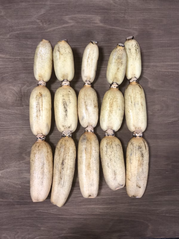 繋がっている状態のレンコンはまずスーパーでは見かけないかと思います。