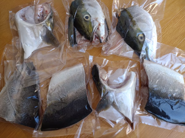 〆て、すぐに3枚下ろし、身とアラと骨をそれぞれを真空にして、急速冷凍しています。