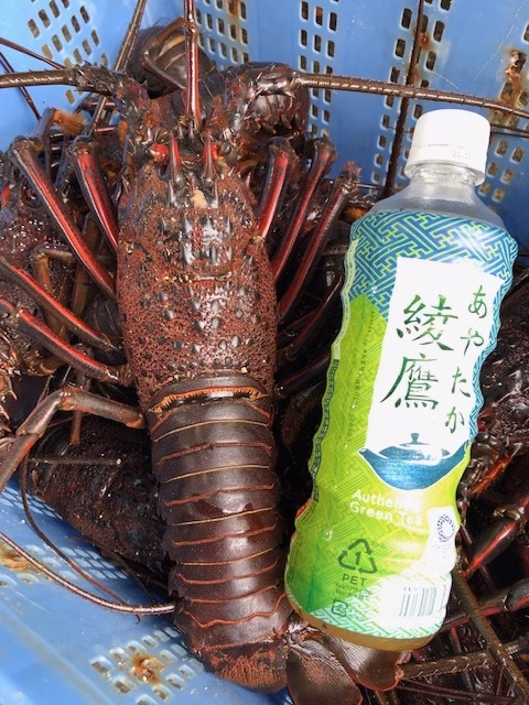 今回出品分は(2匹で合計1050グラムです)とても良い伊勢海老なのですが、潮の流れが早い場所の網だったので、網がグルグルに絡み付き、伊勢海老の脚が取れてしまいました、、通常ですと1.1キロで11000円のお値段ですが、傷物扱いでお値段お安くしてあります、ご自宅で召し上がるのでしたら問題はありませんので、お買い得です!!