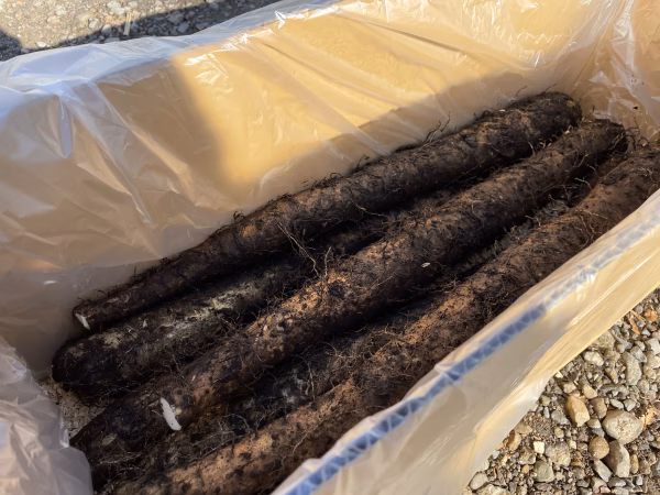昨年の長いもは1本1kg〜1.2kg程度のものがほとんどでしたが、今年は試し掘りをしたところほとんどが1本700g〜1kg程度のものにとどまりそうな見込みです!