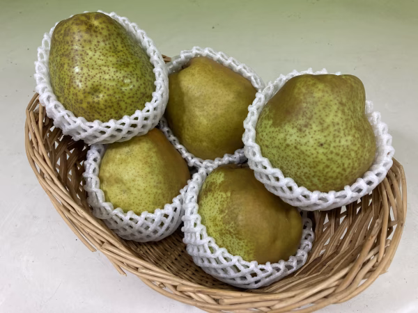 ラ・フランスは収穫直後はまだ食べることができません。追熟と言う行程が必要な果物です。食べごろの2~4日前頃まで当園で追熟した大玉3L品約1.8キロ(5個入り)をお届します。