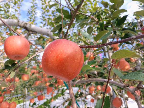 山間地での栽培、寒暖差により果実の締まった美味しリンゴです。