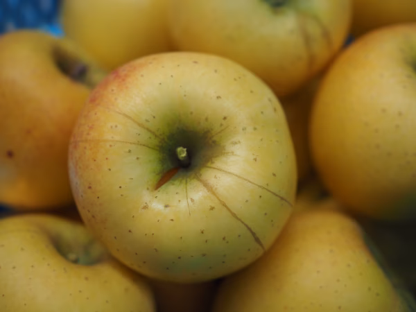 長野県で開発された黄色の王様、「シナノゴールド」。長野県の11月を支える、大人気の黄色いりんごです。