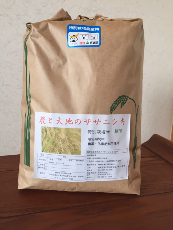 農薬・化学肥料を使用しないで栽培したお米として、宮城県の特別栽培米の認証を取得しています。