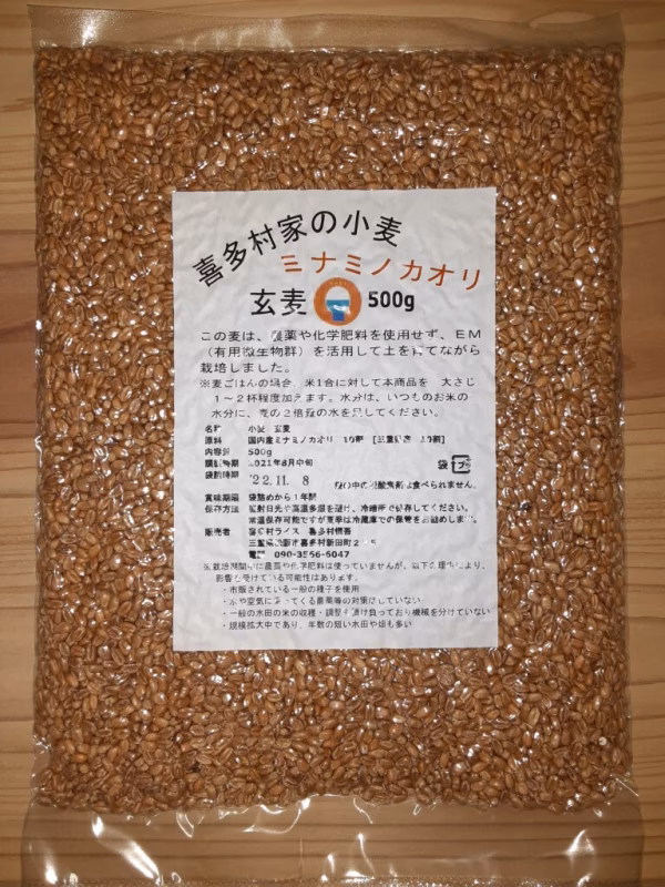 • 2021年収穫分 小麦玄麦500g!!喜多村家の小麦 2021年産ミナミノカオリ