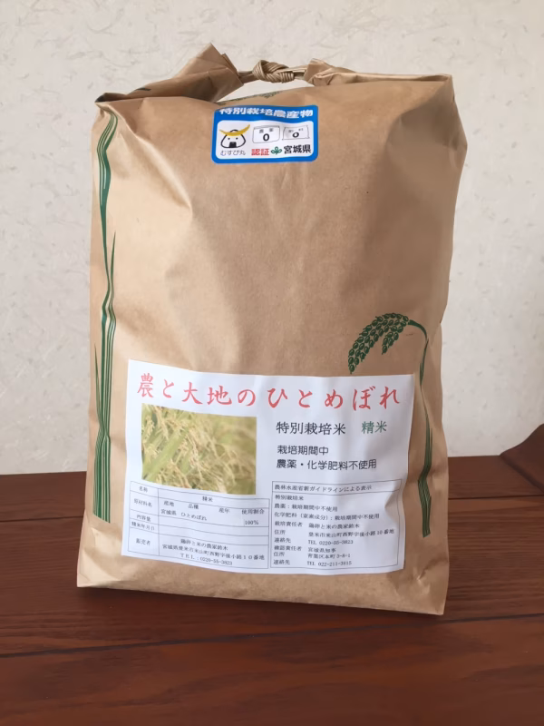 農薬・化学肥料を使用しないで栽培したお米として、宮城県の特別栽培米の認証を取得しています。