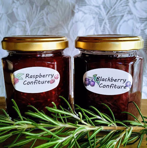 【手作りコンフィチュール2種セット】 ・ラズベリーコンフィチュール 110g ・ブラックベリーコンフィチュール 110g 当園人気のラズベリーとブラックベリーの2種のコンフィチュールの詰合せ。 一つ一つ手摘みした完熟ベリーを水を一切加えず、やさしい甘さの粗糖で低糖度にさらっと仕上げました。ラズベリーおよびブラックベリーそのままの風味を存分にお楽しみいただけます。他ではなかなか味わえないラズベリー栽培農園ならではのフレッシュで贅沢な一品をぜひ一度お試しください。   【原材料】ラズベリー、ブラックベリー(山梨県産)、粗糖(沖縄県産) 【賞味期限】製造日から5ヵ月(夏期)、6ヵ月(冬期) 【使用品種】ラズベリー インディアンサマー     ブラックベリー プライムアークフリーダム 【おすすめ用途】ヨーグルト、スコーン、クリームチーズケーキ、カマンベールチーズなどに添えると色合いも美しく美味。 〇栽培は全て手作業により、農薬や化学肥料は使用せず、少量の有機肥料を施し、できるだけ自然に近い形で栽培しています。 〇 収穫は完熟のもののみをひとつひとつ手摘みし、フレッシュな状態で丁寧に加工することで、生のラズベリーの風味をたっぷり感じていただける商品を皆様にお届けしています。 ♥『食べるジャム』手作りするコンフィチュールは、果物をまるごとぎゅっと閉じ込めた、素朴で贅沢な一品です。 ♥ジャム類はまろやかでミネラル豊かな沖縄産「粗糖」で低糖度に仕上げました。 ♥添加物無添加で手作りし、体にやさしい製品づくりを心掛けています。 ※発送の時期により消費期限が異なります。   (消費期限は最低2か月以上残っているものをお届けいたします。)