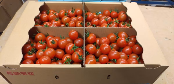 【はじめてご注文の方は、下記をお読み下さい。】 ▼注文に際しての注意点(配送方法や納期指定など) 完熟の超新鮮なミニトマトを召し上がって頂きたいため、お客様がご注文をされた日には発送できません。 ご注文時間によりますが、最短で翌日、最長で5日後の発送になります。 何卒ご理解をよろしくお願い致します。 また、収穫日が決まっていますので、お日にちの指定ができません。 発送後の商品到着日につきましては、お住まいの地域により異なりますので、ヤマト宅急便にお問い合わせ下さい。 ※お正月や長期連休などの場合は、ヤマト宅配便の営業日により、予定通り発送日できないことがあります。 ※天候や配送状況、システム管理上の問題などにより、発送日がずれることがあります。正式な発送日は、ご注文確定後に追って連絡致します。 ▼商品概要 【長崎県・産直ミニトマト『小鈴』3キロ箱】 ※細心の注意を払い検品後に箱詰めしますが、運送中にミニトマトが割れることがあります。3キロ以上と多めに入れますので、何卒ご理解下さい。 また、割れが酷い場合はご連絡下さい。 ▼数量、分量の目安 1箱に3キロ以上入っています。 ▼自己紹介 名古屋から長崎県に移住し、2015年からミニトマト栽培をしています。 元は料理人なので、味はもちろんのこと、衛生面には人一倍気を付けています。 私の息子と娘も喜んで食べる新鮮なミニトマトをご堪能下さい。 ▼品種・味の特徴・食べ方 甘みと酸味のバランスのとれた『コスズ』という品種のミニトマトです。 よーく冷やして、洗ってからそのままパクリとどうぞ。 その他、生のままならサラダやフレッシュジュース、ピクルスやオリーブオイル漬けにするのがおすすめです。 ドライトマトにすると長期保存ができるので、ぜひ試してみて下さいね。 加熱する場合は、スープにしたり、ハヤシライスやカレーに入れたり、自家製トマトソースを作ってパスタやピザに使うことで、いろいろな味わいが楽しめますよ。 お弁当に入れる場合は、必ず『ヘタ』を取って、綺麗に水洗いをして、よく水気をきってから、お弁当箱に入れて下さいね。 (長時間常温で置いておくと、ヘタに菌が増殖する可能性があります。) ▼栽培/生産方法、こだわり 有明海を望む大自然の中に建つビニールハウスで、約4,500本のミニトマトの木を育てています。 ミネラルを多く含む肥沃な大地で、愛情たっぷりで育てたミニトマトをお楽しみ下さい。