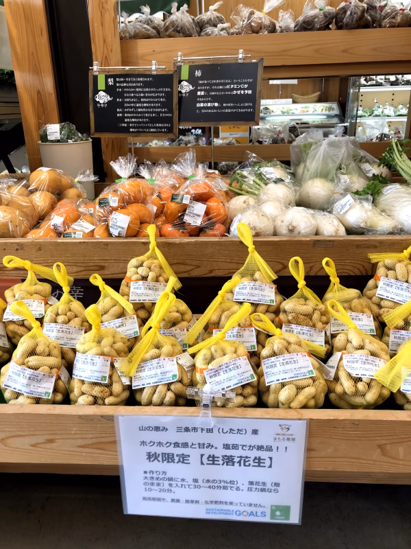 新潟県三条市旧下田村地域で、農薬の使用を極力抑えて栽培した大粒(おおまさり)の生落花生です。