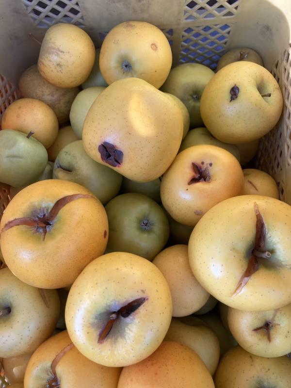 超訳ありシナノゴールドジュース用!ラフランスオマケ付き箱込み7キロです。 写真のように、バカって割れたり、ダコンがあったりキズや小玉だったりのシナノゴールド😭 だめなとこ取れば食べられます‼️ ジュースや加工にお使いくださいませ♪ ご検討よろしくお願いします! 伝票来ましらすぐ発送します😄