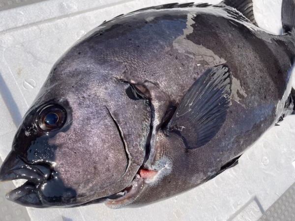 今朝の素潜り漁で海に潜り銛で突いた石鯛です。