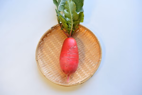 濃厚な紅色ながら、果肉は真っ白。サラダの色どりに◎