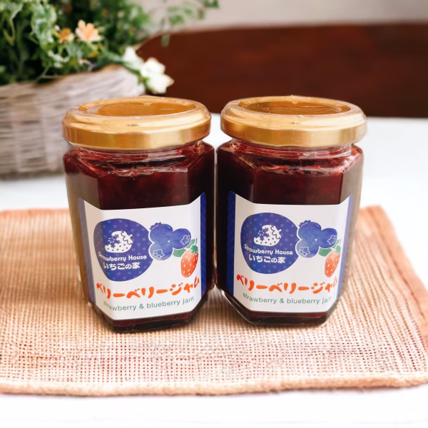 - 名称:ベリーベリージャム(いちごとブルーベリーのMIX) 原材料:イチゴ、ブルーベリー、砂糖、レモン汁 内容量:140g 販売者:たくみの里いちごの家 TEL:080-9568-4706 製造者:株式会社ユアサ 栄養成分表示:(140gあたり) ※推定値 エネルギー 248kcal たんぱく質 0.76g 脂質 0.19g 炭水化物 60.8g 食塩相当量 0.0g