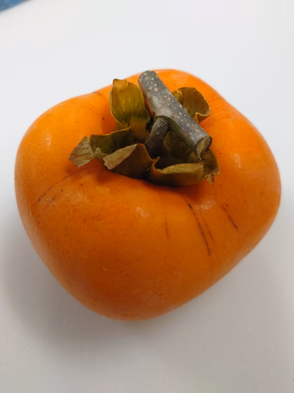 ▼平種無柿に軸を付けて収穫した物です。干して完成するとあんぽ柿になります。