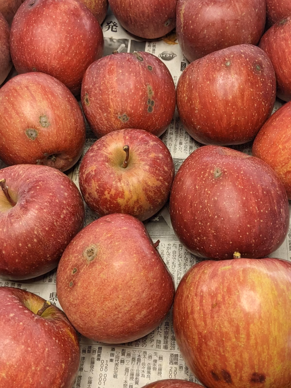 斑点模様や着色不良の訳ありですが、酸味と甘味が良好です。大きさにより3〜6玉の袋詰めにして5kgになるように詰め合わせます。大小サイズ混合の詰め合わせとなりますが、価格は、リーズナブルに設定しております。