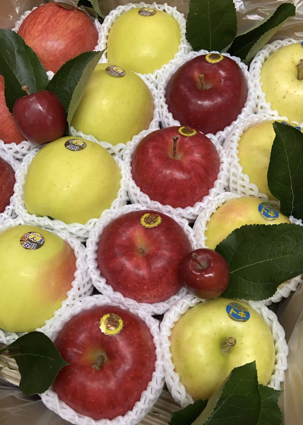 お届けするりんごの例:シナノスイート、サンふじ、トキ、王林など