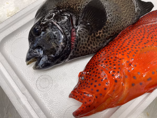 素潜りでの魚突きで捕獲しています。常に頭、エラ付近を狙うように意識していますが、体に撃つ事もあります。