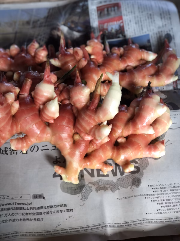 採れたて新生姜は収穫してから1日経つたび掘り立ての瑞々しさが失われていきます。