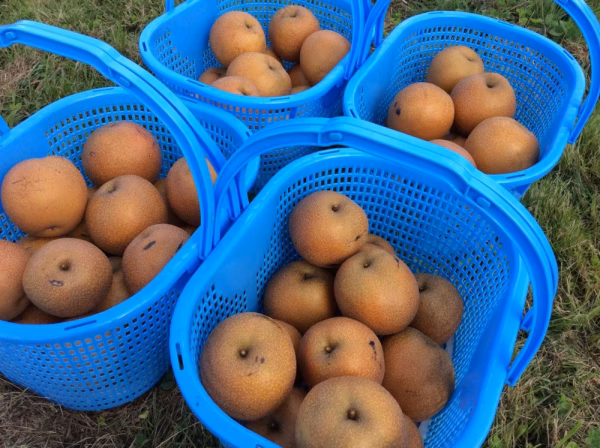 「秋泉」は秋田県が育成した新しい品種で、不格好ですが甘味が強い赤梨です。