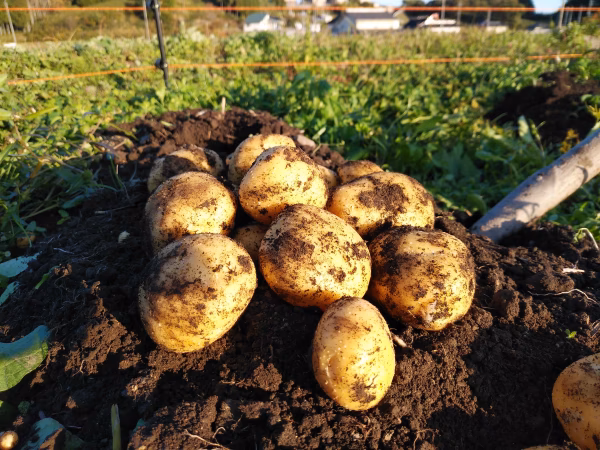 岡山県苫田郡鏡野町で収穫したジャガイモ【ながさき黄金(こがね)】です。