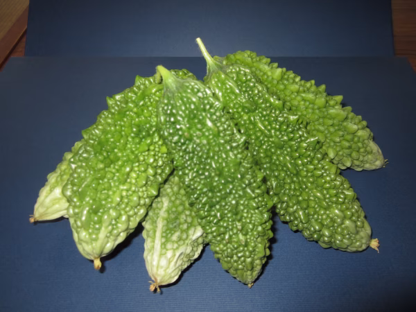 ゴーヤは見た目や触った感じとは違い、約90%の高い水分含有率で、キュウリと同じ程度の低カロリーでビタミンCとカリウムが豊富な野菜です。本来南国の食品ですが、土質が合うのか雪国新潟県でもよくなり、年によっては秋おそくまで実ってます。
