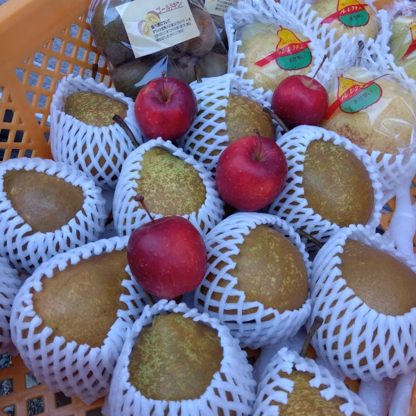 ※ルレクチェは小玉のため若干渋味が残りやすいので生食用よりも加工用に向きます、洋梨(ル・レクチェ、ウインターネリス)、ゴールドキウィ(普通に生食可)、アルプス乙女(食べられます)が入ります