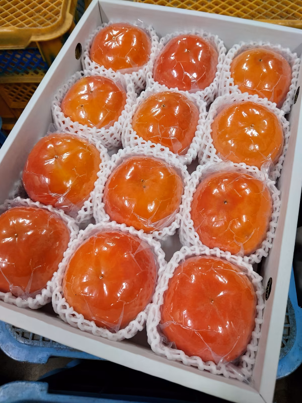▼3Lの富有柿を選果後に真空包装しています。冷蔵庫にて保管してもらえれば、1週間〜4週間新鮮なまま食べる事が可能です。