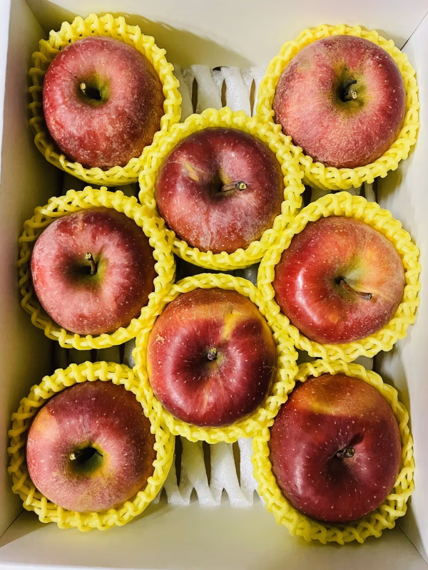 果肉が普通ふじより硬く、果汁が豊富で味のバランスもよく甘みと香りがしっかりと感じられます。
