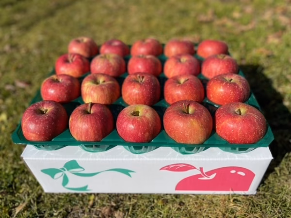 ○当園のこだわり 当園のりんごは『樹上完熟』を基本としています。木の上で完熟まで待ち、一番おいしい時期に収穫しています。 また、当園は群馬県の山深いところに位置し、きれいな水と空気で育ったりんごです。 ○サンふじ 小玉ですが、完熟でミツ入りです。 当園の一番人気のりんごです。 袋をかけず、太陽の光をいっぱい浴びて育っています。 ○群馬県のりんご 群馬県のりんごはほとんど市場出荷していないので、スーパーなどではほとんどみることがないと思います。りんご園の一人一人のお客様においしいりんごだけを提供しています。 ぜひこだわりのりんごをご賞味ください。