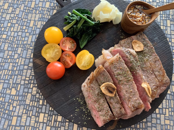 サシと赤身のバランスが良く、噛めば噛むほど味が出るジューシーな牛肉です。サーロインステーキはとても柔らかい部位なのでミディアムレアでさっと焼くのがおすすめです。