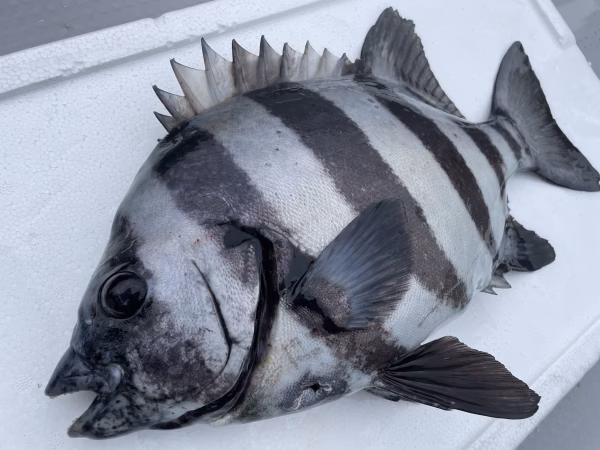 今朝の素潜り漁で海に潜り銛で突いた石鯛です。