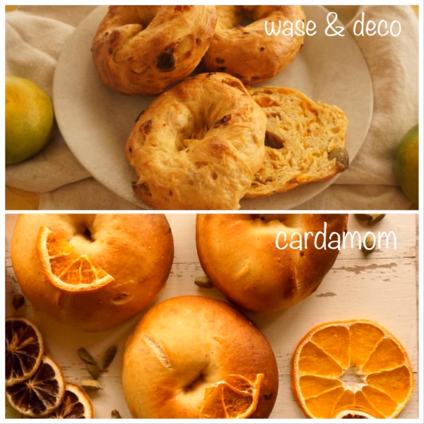 天草のみかん屋さんが作る、早生みかん&不知火(6個)と、不知火&カルダモンのベーグルセットです。