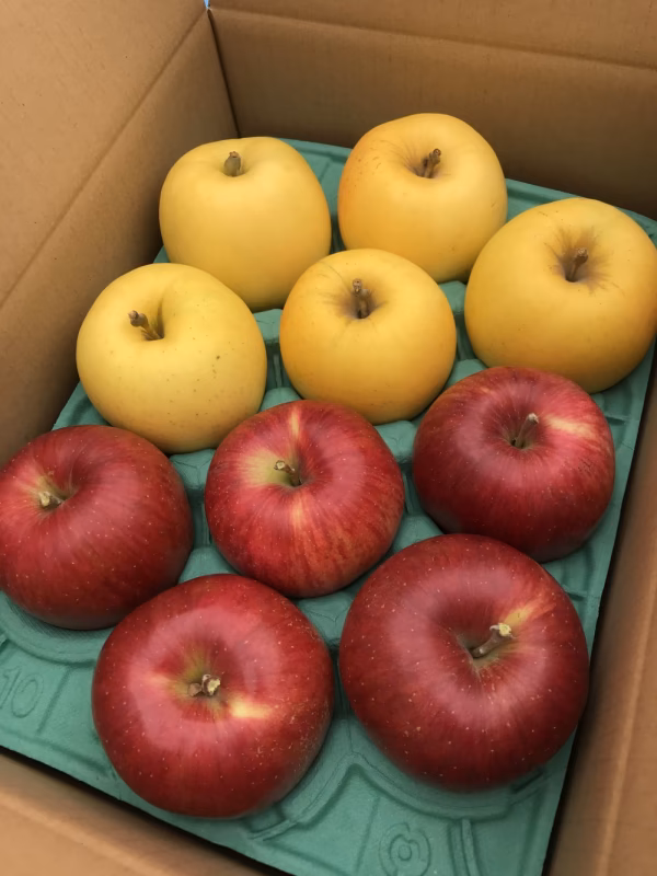 甘さと酸味のバランスが良く「ふじ」とは違う味のバランスで人気のシナノスイート🍎甘みが強くシャリシャリした食感のもりのかがやき🍏 をミックスして家庭用でご用意しましたよー‼️
