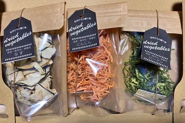 【商品概要】セットC🥗 ☆人参 25グラム ☆なす 8グラム ☆ピーマン 8グラム ◇上記3種類の野菜を詰め合わせします。 ※季節の野菜を乾燥しているため、時期によって変更がございます。 ※乾燥野菜の中でも人気の3商品をお試し価格のセットにしました。 乾燥野菜のメリット 1. 洗う&切るの手間がいらない 2. 水分が抜け、栄養価が凝縮している 3. うま味もグッと増す 4. 噛みごたえがあり消化吸収力がアップ 5. かさばらず、長期保存が可能 新鮮な野菜本来のおいしさはそのままカットした上で乾燥加工しました。 包丁いらず、カット不要で時短調理。 そのまま料理に加えても、水で戻しても使用可能です。 生野菜は傷みやすく長期保存できませんが、乾燥野菜は常温保存ができるのでとっても便利。 ※1袋に乾燥野菜約5~25g入り。生野菜に換算すると約70gから450g分となります。 野菜不足が心配な食生活にプラスすることで、野菜を補う助けに。 また、常温で長期保存が可能で、1回分個包装で使い切りなので、キッチンにストックしておけば食べたい時にいつでも手軽にお使いいただけます。 水で戻して使用した際の"戻し汁"は料理のだしとしてお使いいただけます 【栽培/生産方法、こだわり】露地栽培  土にはこだわり牛糞、鶏糞、有機肥料を使用しています。 農薬に関しては極力使用せず 自分でも安心して食べれるものを使用しております。 ~食べ頃のものの収穫、販売を心掛け、なるべく新鮮なうちにお客様へお届けてます~ ■注文に際しての注意点(配送方法や納期指定など) 発送はヤマト運輸を利用