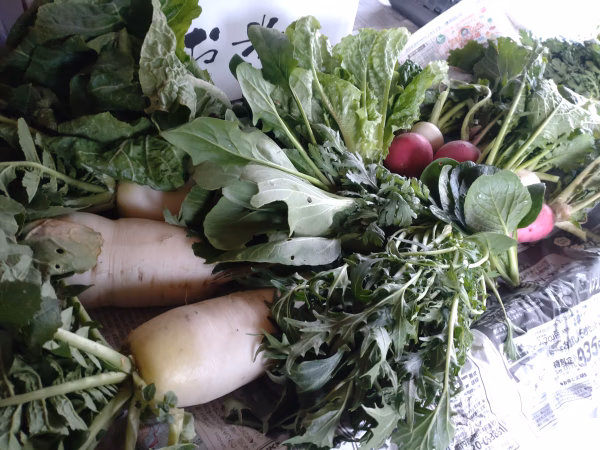 白菜の間引き 春菊 ホーレンソウ ゆず かぼちゃ