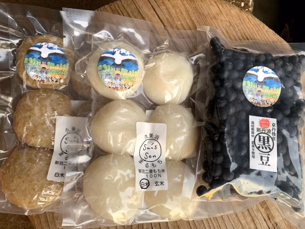 - 名称:黒豆 原産地:京丹後市久美浜町 産度:令和4年度産 賞味期限:1年 保存方法;直射日光・高温多湿をさけて保存 販売者:久美浜sun's son 京丹後市久美浜町海士613 名称:丸餅 原材料名:新羽二重餅米(京丹後市産) 賞味期限:到着より1か月 製造者:久美浜sun's son 京丹後市久美浜町海士613 保存方法:冷蔵庫または冷凍庫で保存