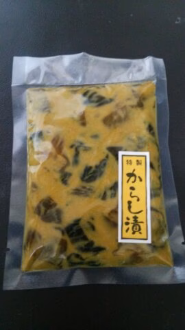 当農園で栽培したキュウリをからしで漬けたお漬物です。パリパリとした食感に加え、からしの程よい辛みと、ほんのりとした甘みが特徴のお漬物です。日本酒にもぴったり。