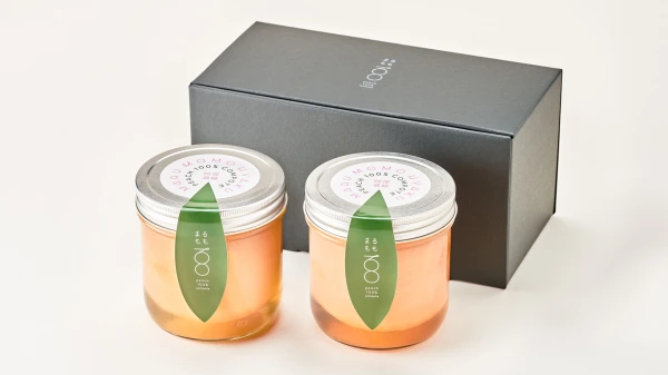 生の桃に近い風味を感じられるように甘さは控えめに。水を一切加えずに、100%桃の水分だけで作る無水コンポートです。