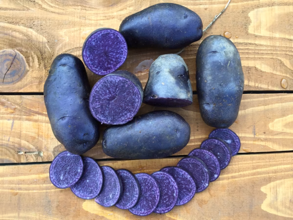 抗酸化成分アントシアニンが抜群で、加熱しても紫色が損なわれにくいのが特徴です。皮ごと焼いて、食卓の彩りに。ポテトサラダやフライドポテト、ポタージュなどのスープにも。2年ほど耕作放棄された畑で、農薬および肥料を使用せず栽培しました。休眠期が長く春まで芽が出ません。