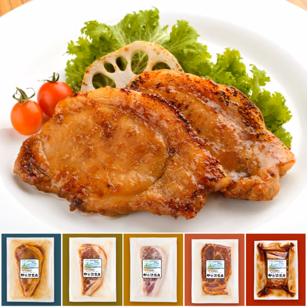 宮城県産豚のロースを原料に「味噌漬け」「醤油麹漬け」「塩麹漬け」。肩ロースを原料に「香草漬け」、「豚丼用 味付け肉」の計5種類の味付け肉を作りました。食べ比べやお試しに、ご自宅のストックに様々な用途でお試しください。解凍して焼くだけで、様々な味わいをお楽しみいただけます。