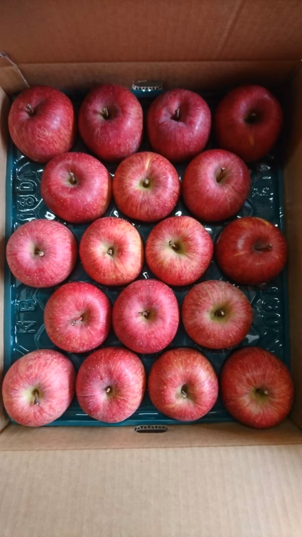 11月末から12月頭に収穫しました!良品サンふじが入ります。