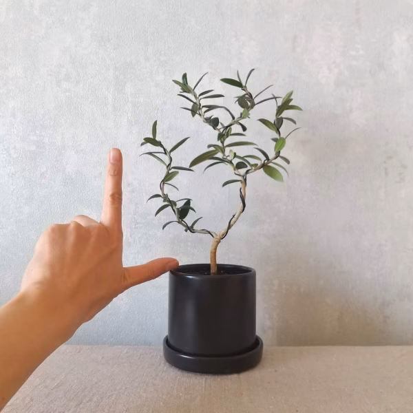 オリーブは好きだけれど、こじんまり小さいままで長く付き合いたいという方にぴったりの、盆栽向きのオリーブです。
