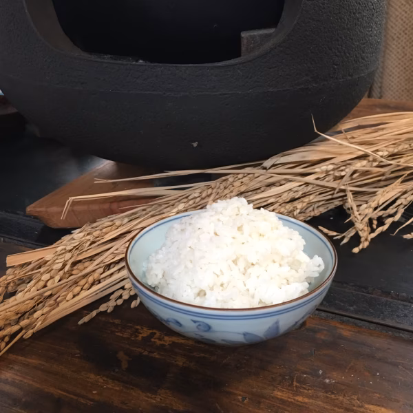 ヒノヒカリは、九州では常用米として人気のあるお米です。ヒノヒカリの父は「コシヒカリ」、母は「黄金晴」で、ヒノ(陽の)は西日本、九州を表し、「ヒカリ」はお米の光る様を表しています。