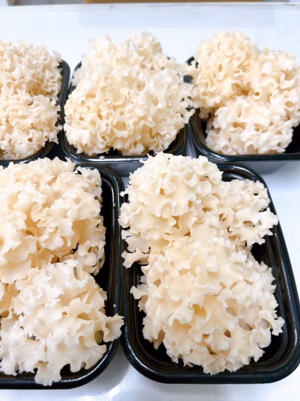 自社開発及び製造の種菌を使用し、 栽培期間中農薬不使用及び管理された室内で安心・安全に生産されたハナビラタケです。