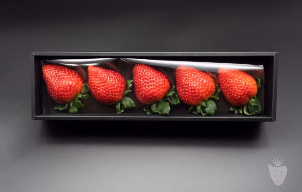 大切な方への贈り物として相応しい豪華な漆黒パッケージ仕様。今回のパッケージデザインは、宇都宮から多彩なアイデアとデザインを創造している、ちふも株式会社様の洗練されたデザイン。外箱からではイチゴと分からない様になっています。
