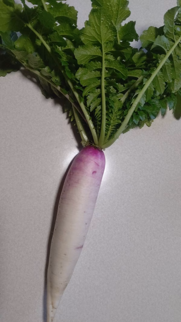 桜島の大自然の恵みをいっぱい詰め込んで、鹿児島県鹿屋市の寒暖差が激しい厳しい状況の中で、力強く育った大根です。