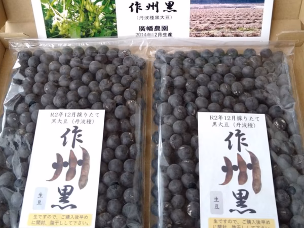 まさにこれから収獲してお届け。新鮮そのもの。 乾物というよりも生の黒豆。煮込み時間が短いです。 内容 今年12月中旬の採れたて。丹波種黒大豆「作州黒」250袋×2個。 配送 常温便 数量1点ごとに送料が発生します。 発送 日曜日, 月曜日, 火曜日, 水曜日, 木曜日, 金曜日, 土曜日 この商品はお届け日を指定できません。 <味>ご存知、お正月煮豆用の高級品種黒大豆です。通常店舗に並ぶ黒豆はその年の1月に収穫したものが殆どで、新豆と言っても約1年前のものです。当園の黒豆(生)はまさに収穫したてのもので、煮豆にするとその差は歴然です。ただし、出荷は年末近くになりますのでwebによる完全限定数量のみの注文とさせていただきます。 なお、この商品は追跡の出来るクリックポストでの発送を予定しております。お届けはポスト投函になり日時指定はお受け出来ません。送料には梱包材費用こみとされております。ご理解お願いします。 <栽培のこだわり> 栽培は金肥(化学肥料)を使わず堆肥中心に栽培します。肥料を使うと枝葉は大きくなりますが、肝心の実(枝豆の莢)の付きは悪く莢の太りも悪いです。根が空気を好むため畝は高くし、大雨などによる湿害を受けないよう圃場整備を入念に行います。 <産地の特徴> 産地の岡山県北部は、本場丹波地方と似た内陸性の気候で寒暖の差が大きく、黒大豆が好むといわれる朝霧の発生が頻繁にあります。お盆前後は開花して結実する時期で、十分な水が必要ですが、中国山地で発生した雷雲の通り道にあたり、適度な自然の散水を得ているようです。 <品種など> 丹波種はお正月の煮豆用に重宝される「丹波黒」と同じ高級品種ですが、当圃場は岡山県美作地方にあり、この地の別名をとって「作州黒」というブランドを築いています。 莢の中で黒くなる前には綺麗な緑色で、豆の薄皮が次第に黒く変色し始める頃(10月中旬から下旬)が旬となります。