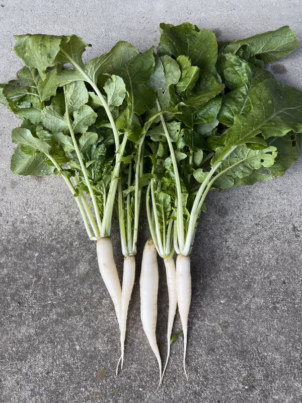 お正月用の祝い雑煮に丸い円形のまま、お椀に入れられるよう、小さめに栽培しました。